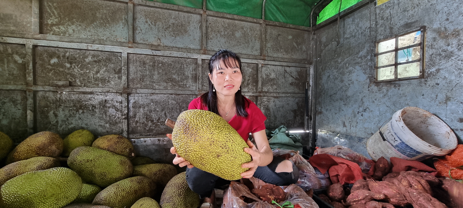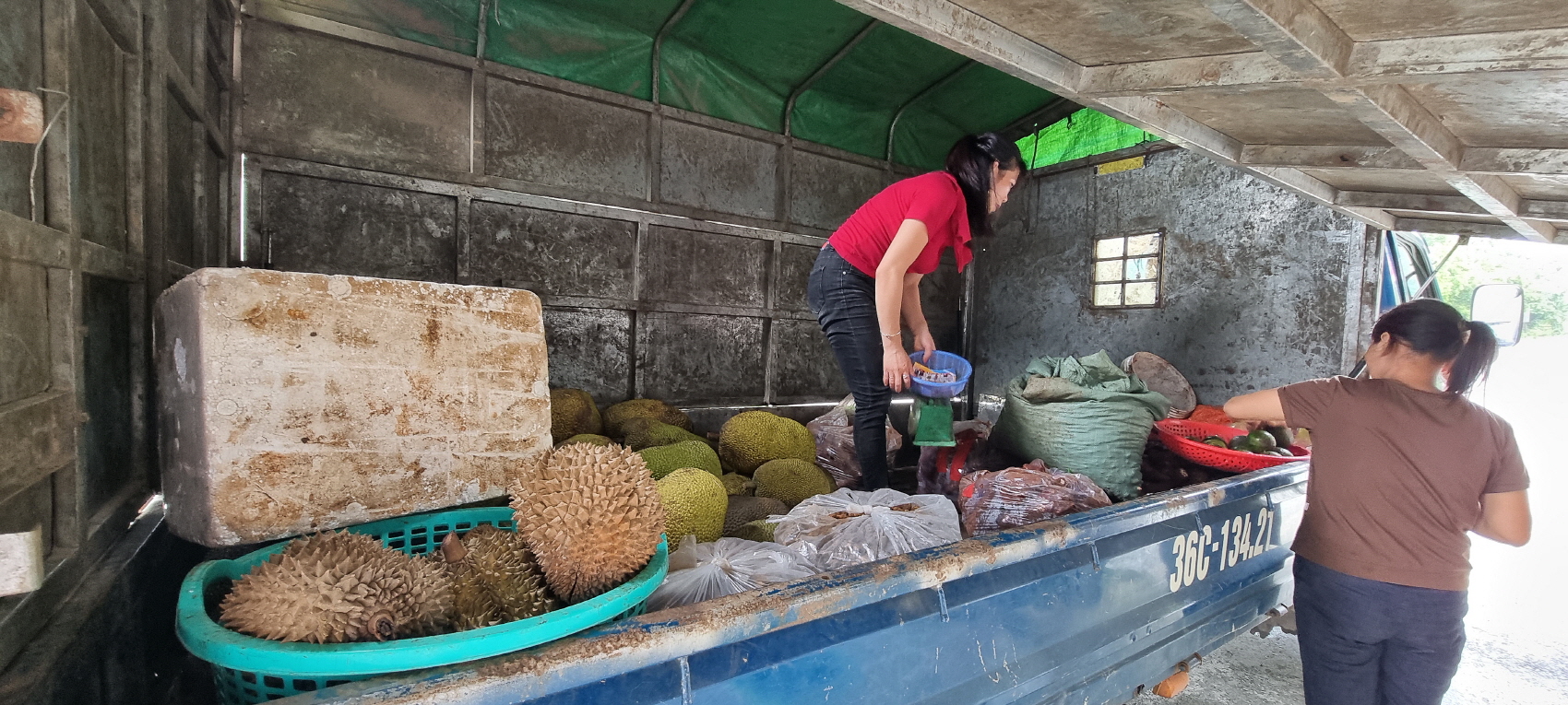 각종 야채와 과일을 납품하는 트럭이