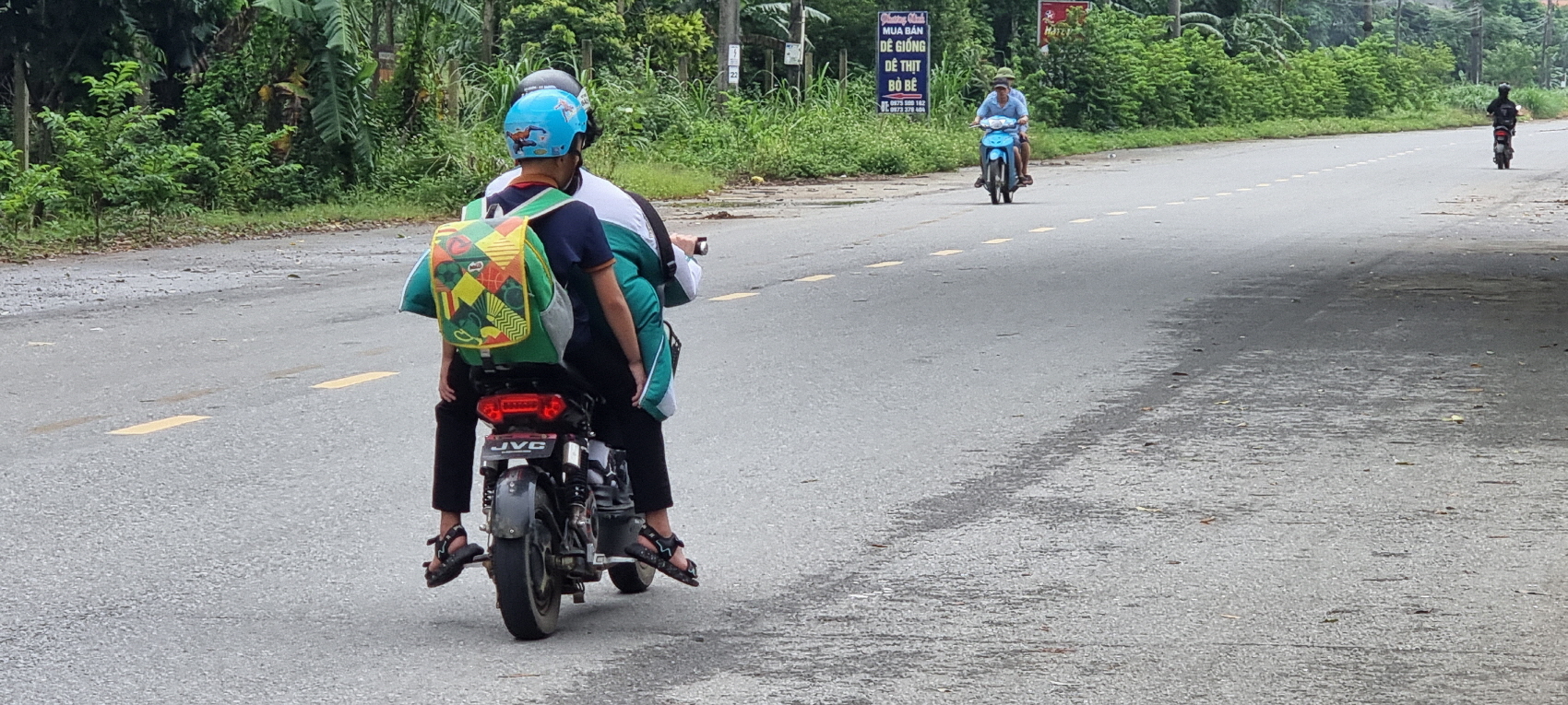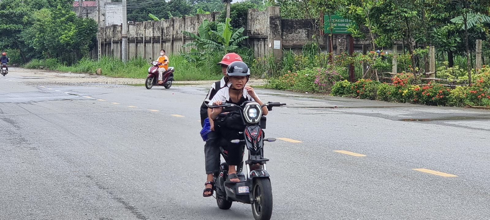 저마다 오토바이를 타고 등교를 하네요.