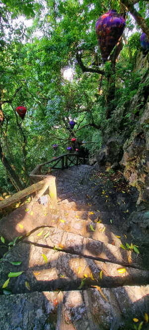 산 정상에 있어 수많은 계단을 힘들게 오른