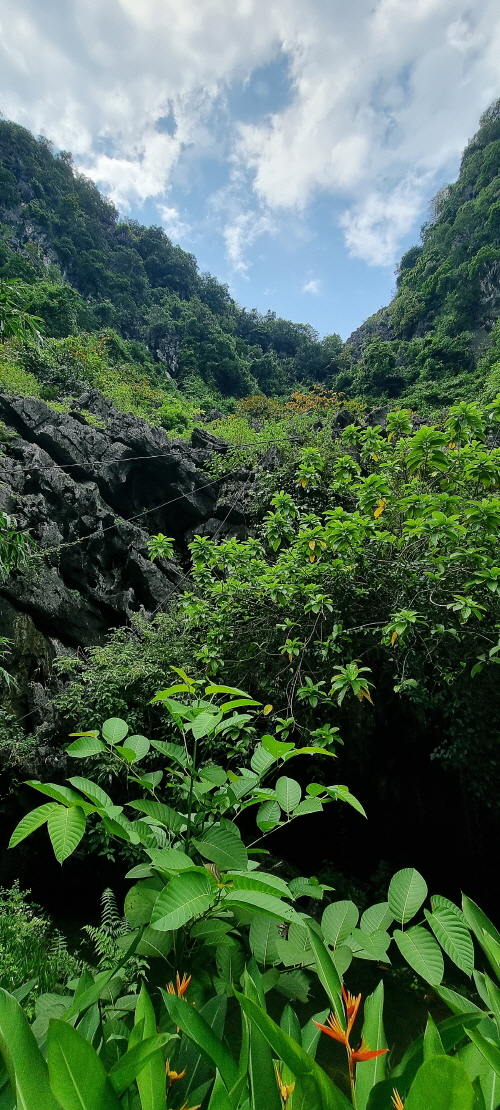 암티엔 동굴의 대부분 지역은 바위 절벽으로 둘러싸인