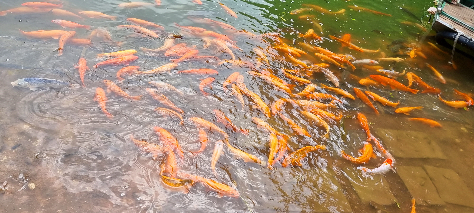 애교를 부리는 비단잉어와 그냥 잉어입니다.
