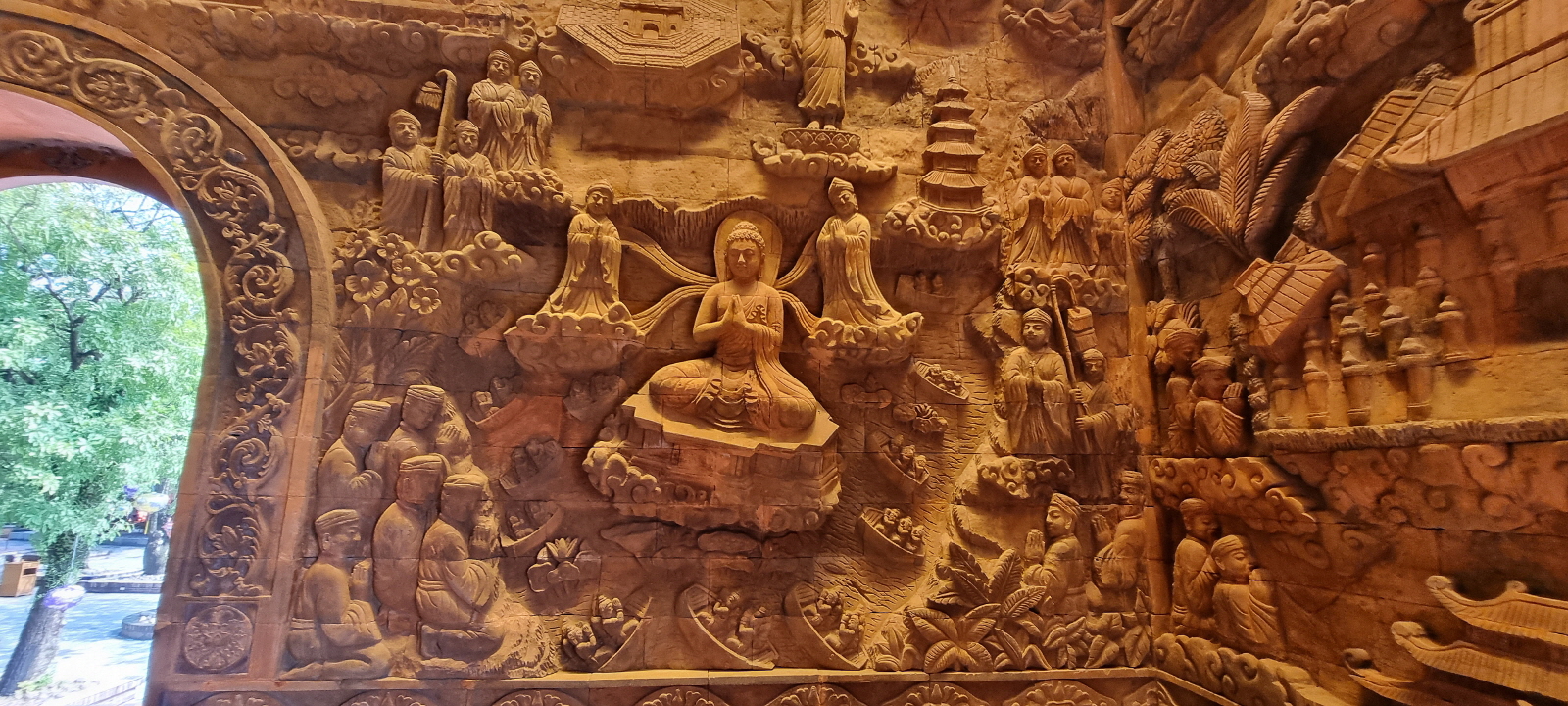 전체가 붉은색 화강암으로 제작 및 건축되었습니다.