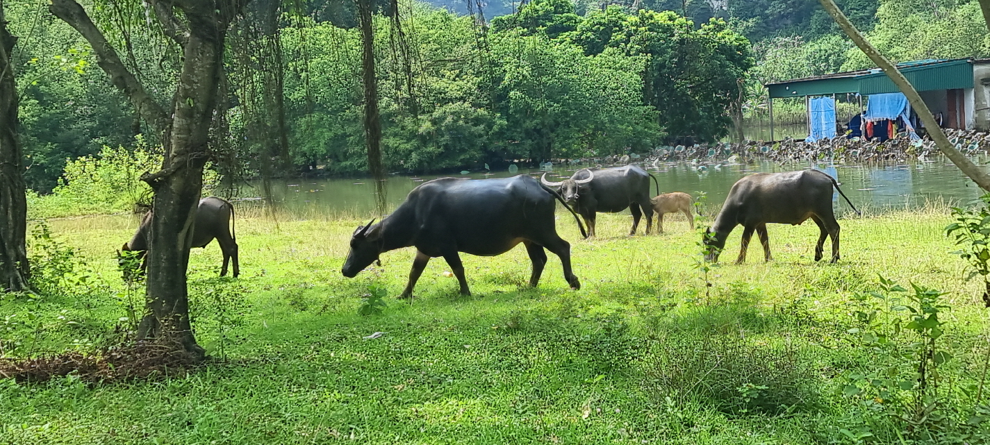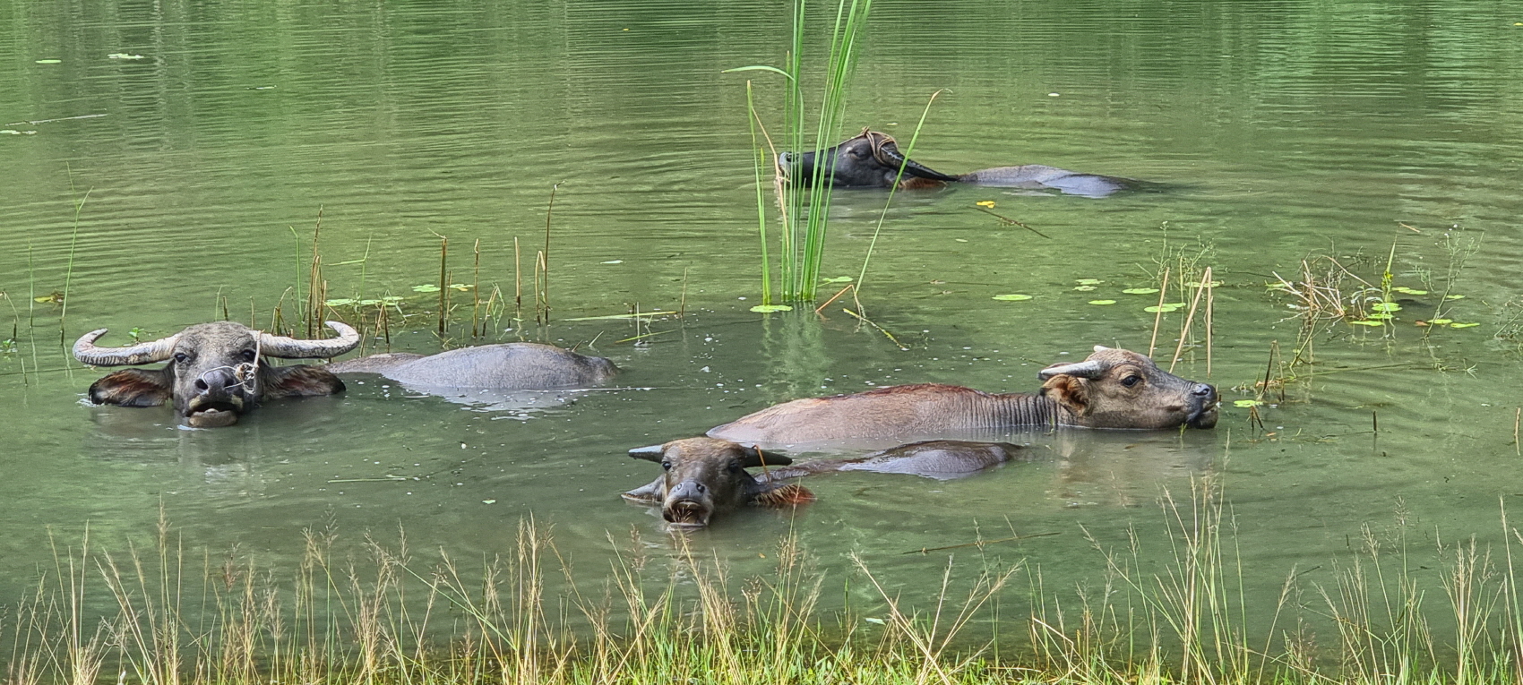 한가로이 노니는 물소들을 보니, 평화로워 보입니다.