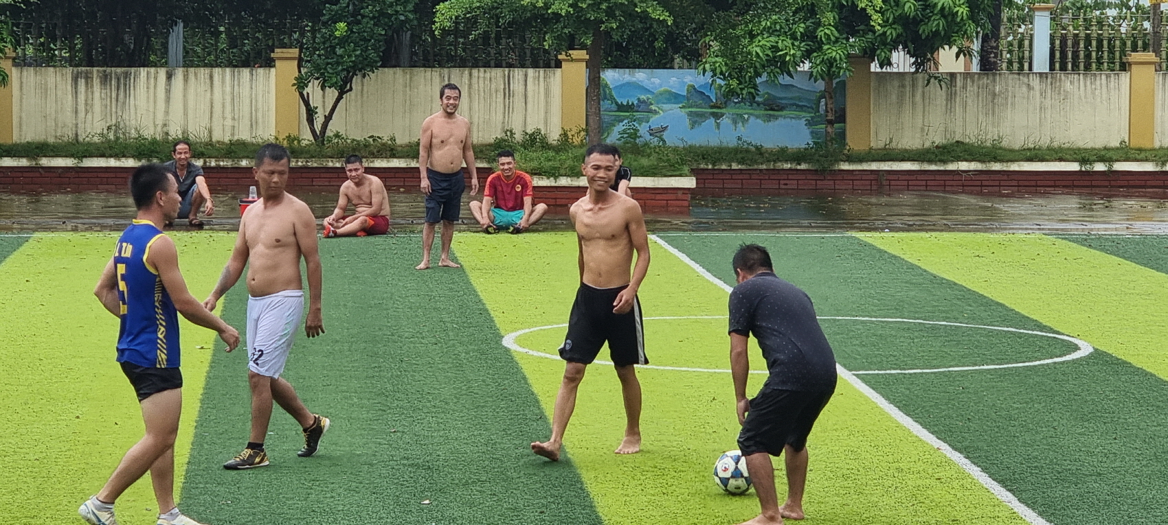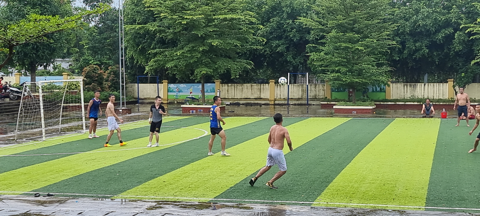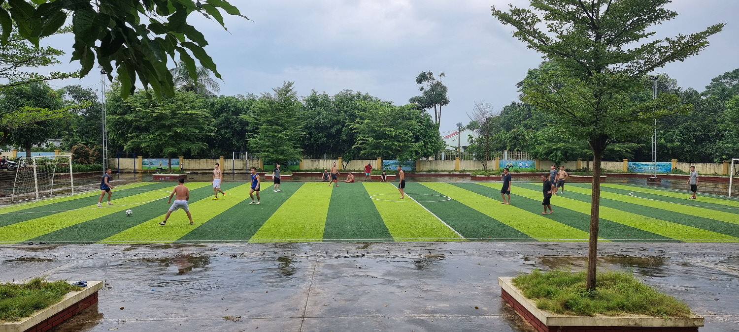 비 오는 날이라 다들 인조잔디 축구장에서