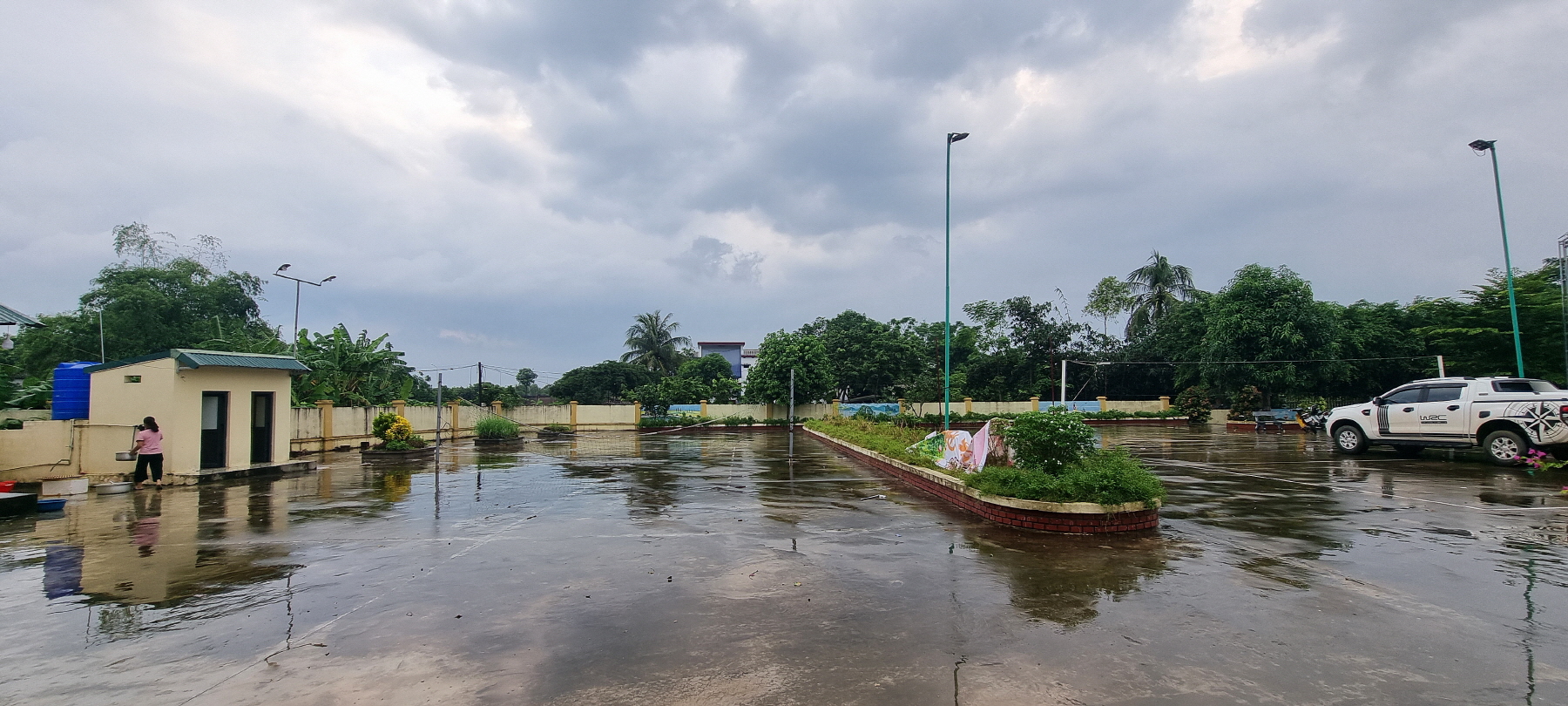 배구 네트도 있는데 시멘트 마당이라