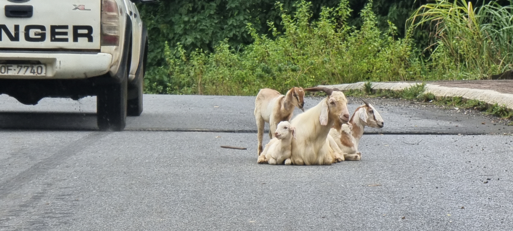 엄마 염소 " 괜찮아 차가 피해 갈 거야 "
