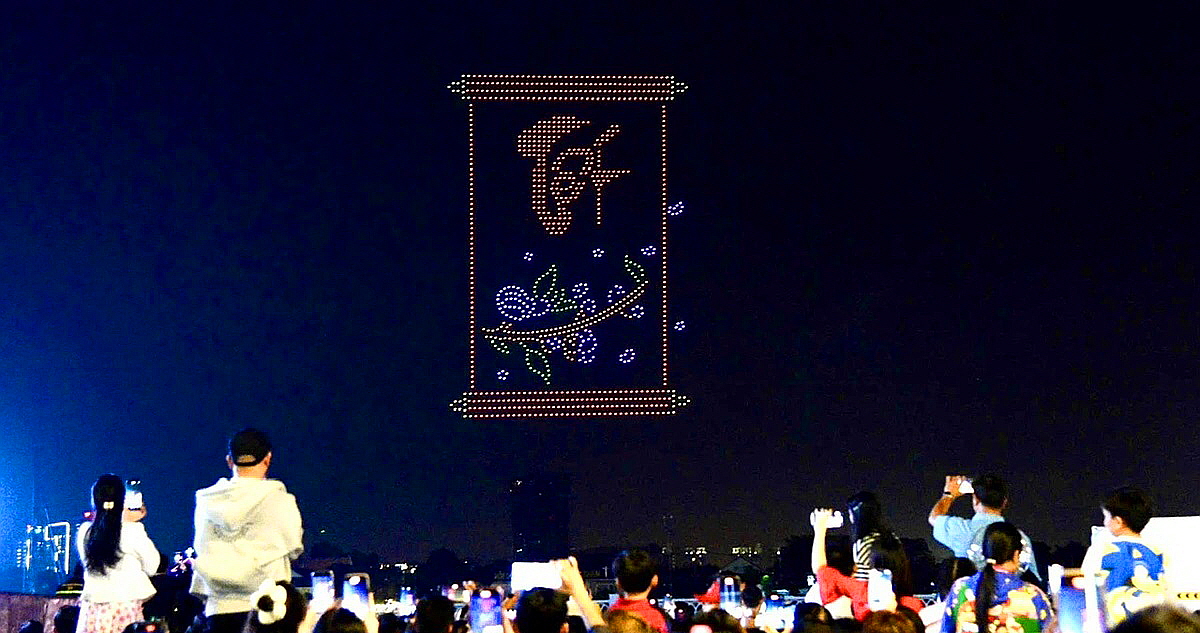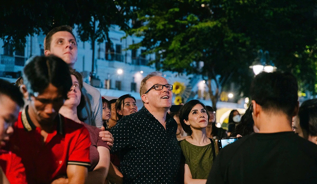 사이공강 지역에서 드론 공연을 즐기는 사람들입니다.