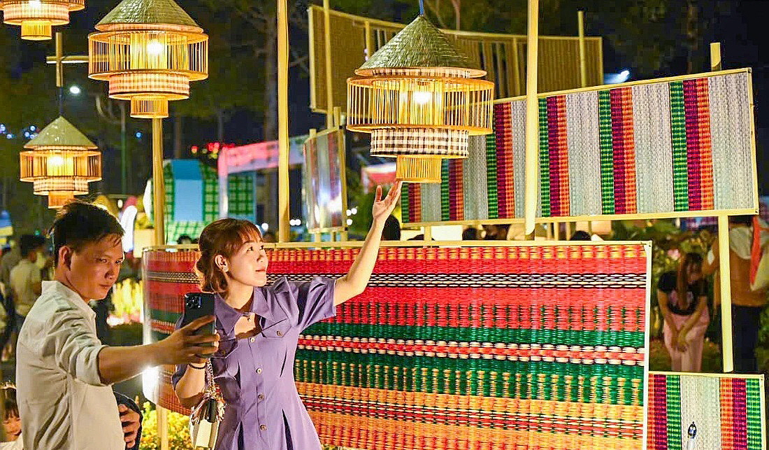 호치민시 응웬 후에(Nguyen Hue) 꽃거리에서 관광객에게
