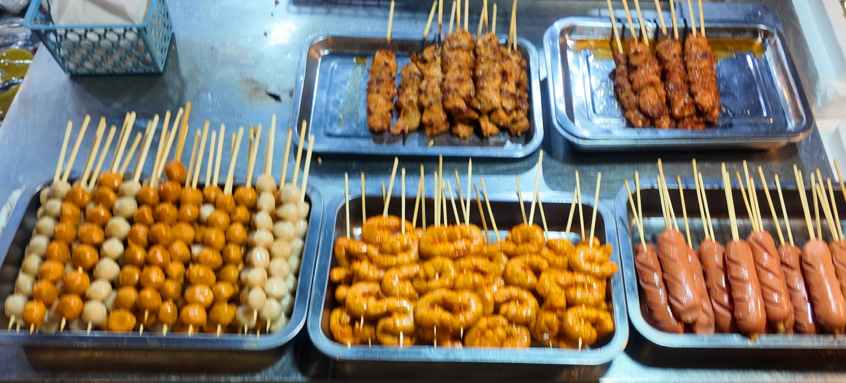 오늘 팔리지 않은 꼬치들은 냉장고도 없는 곳에서