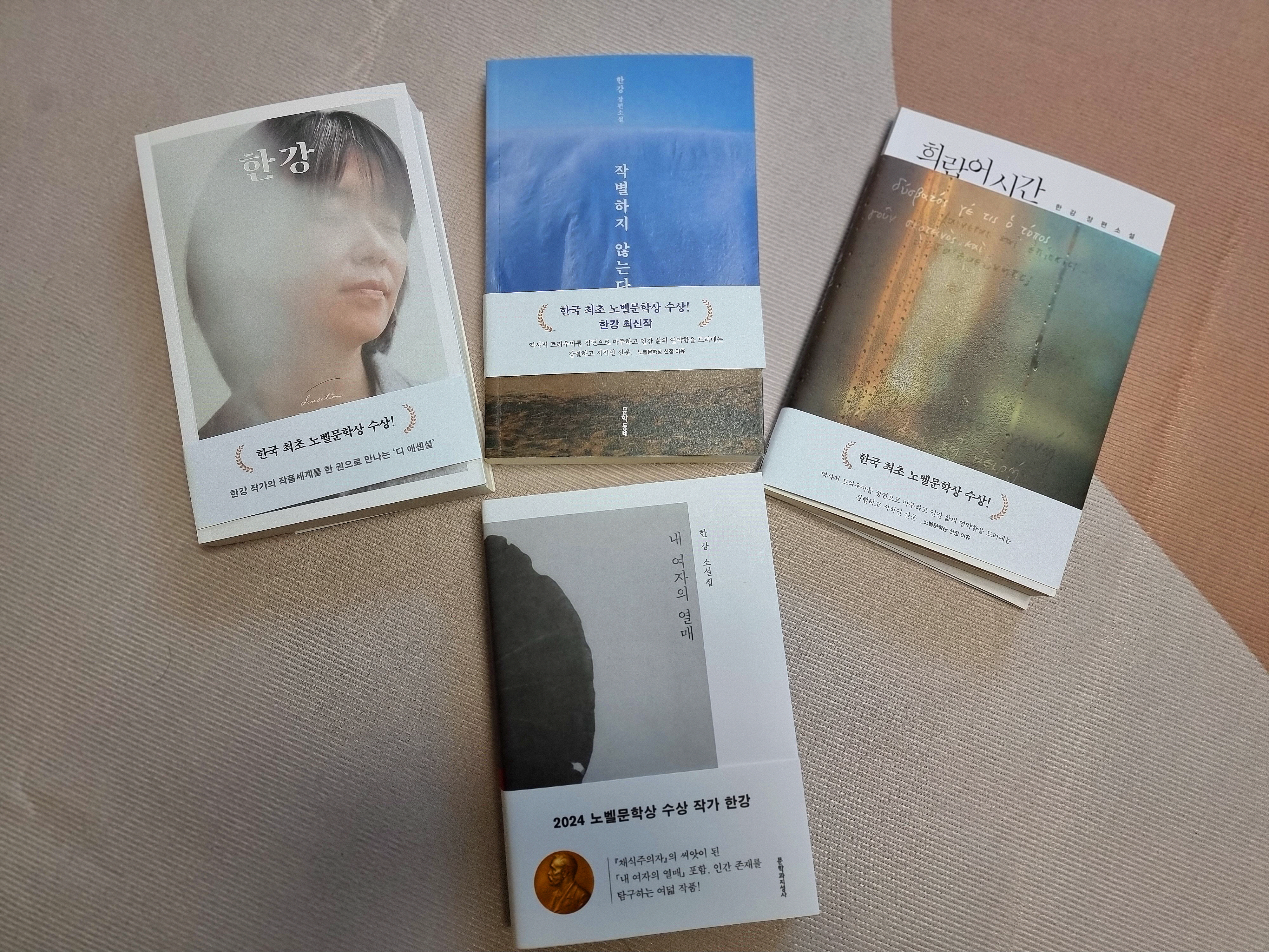 한강 작가의 책 네 권을 구입했습니다.