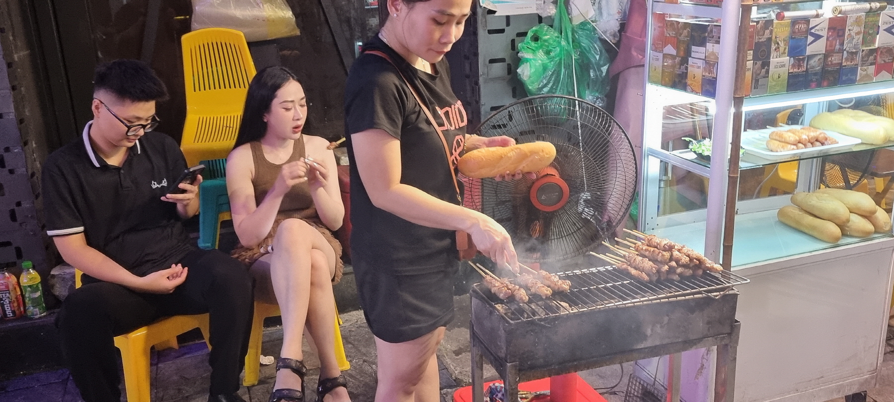 냄새에 취해 왔더니 반미에 넣을 돼지꼬치구이를