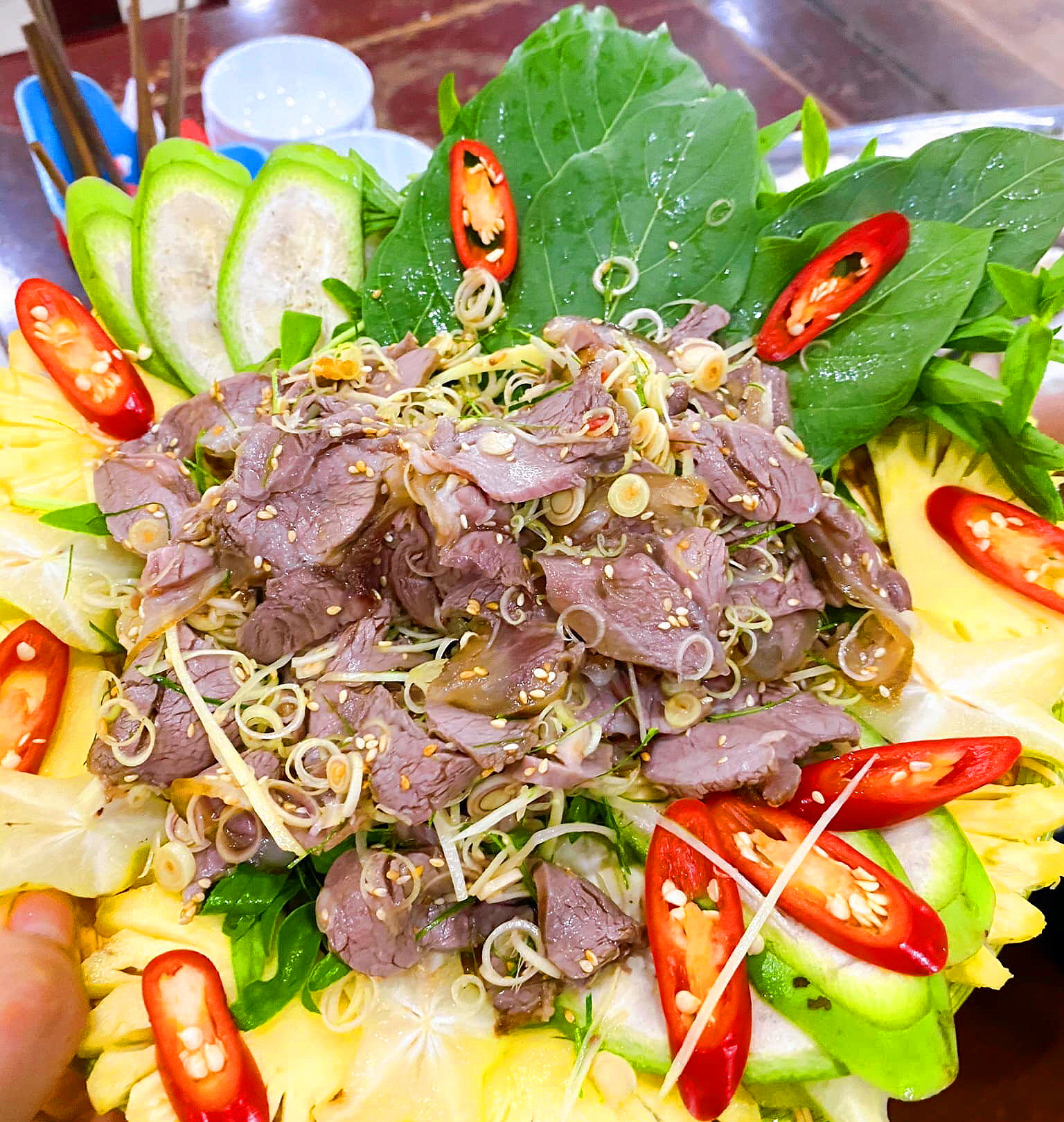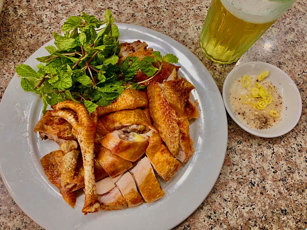 레몬그라스를 곁들인 찐 염소고기, 후추를 곁들인 찐 닭고기,