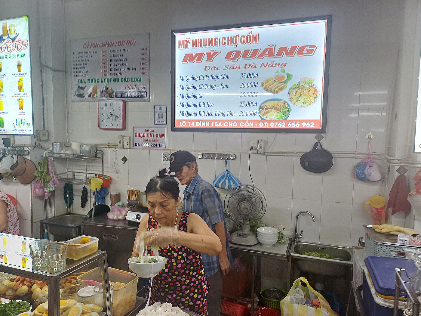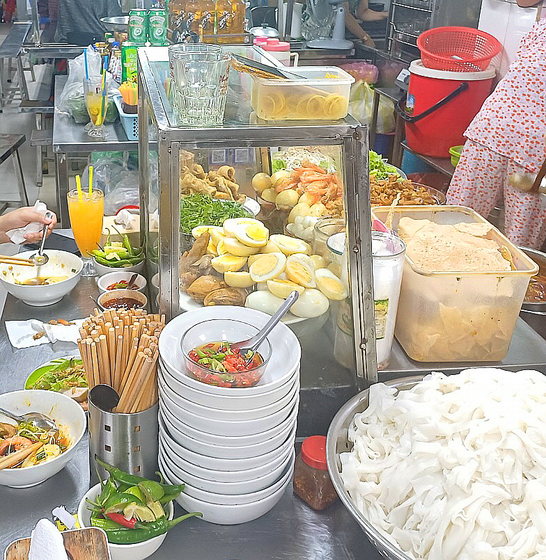 돼지고기, 새우, 계란을 넣은 미광 쌀국수 전문점입니다.