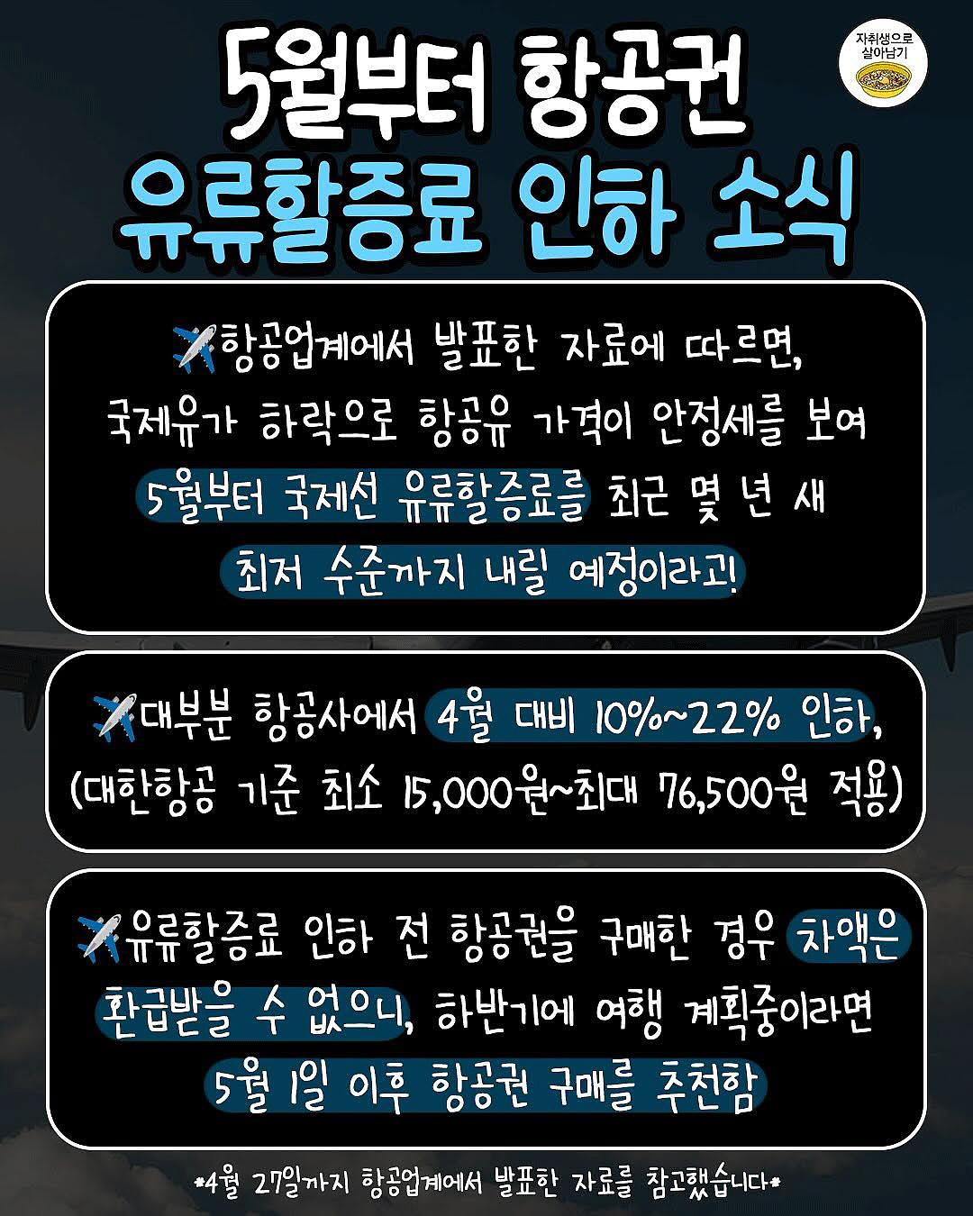 유류할증료를 내린다고 하는데