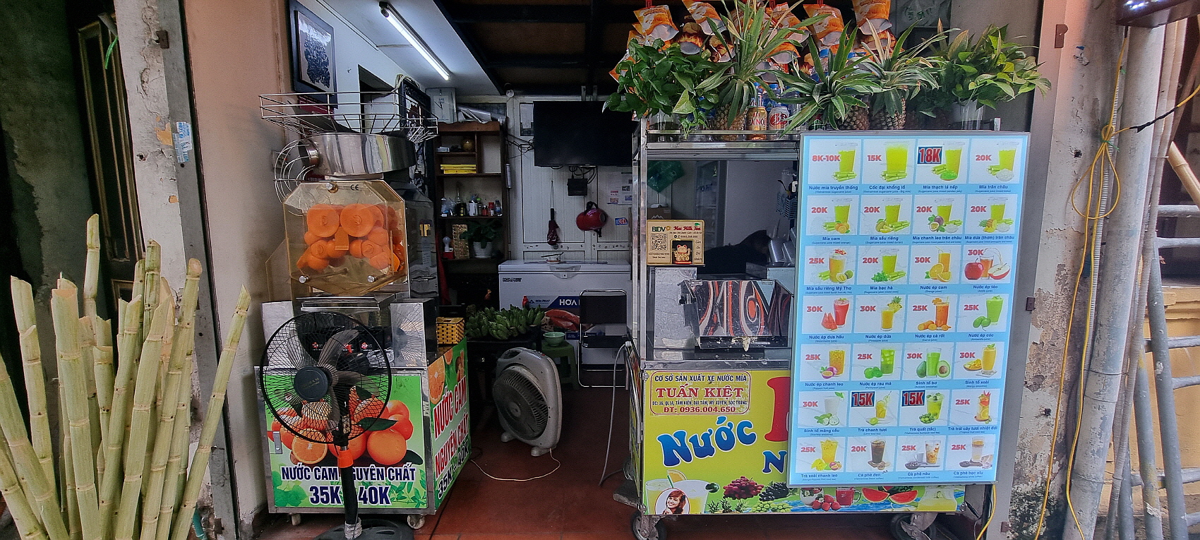 목이 말라서 설탕수수 한잔을 샀습니다.
