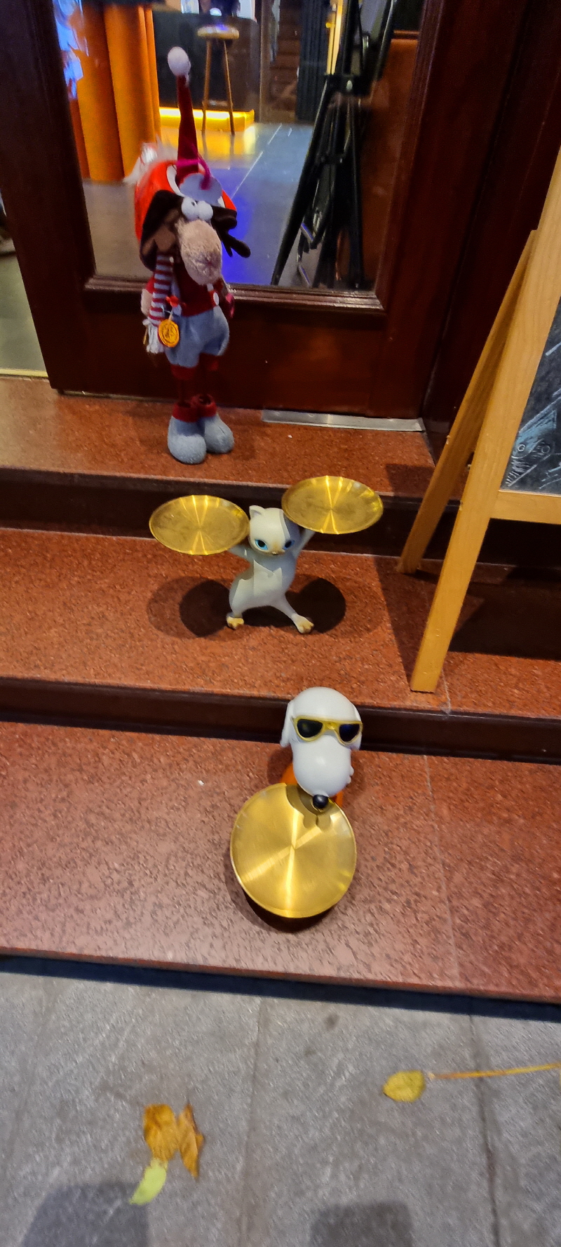 카페 앞에 귀여운 마스코트가 폼을 잡고 있네요.