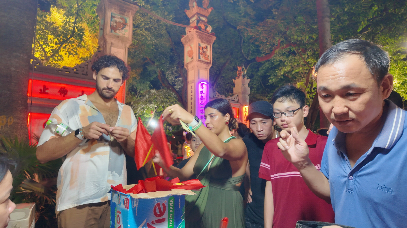 입장하는 이에게 베트남 국기를