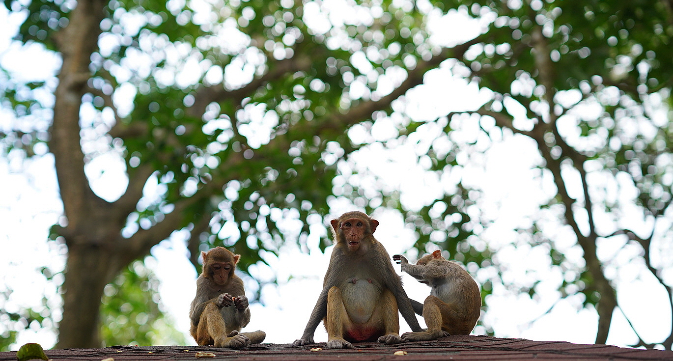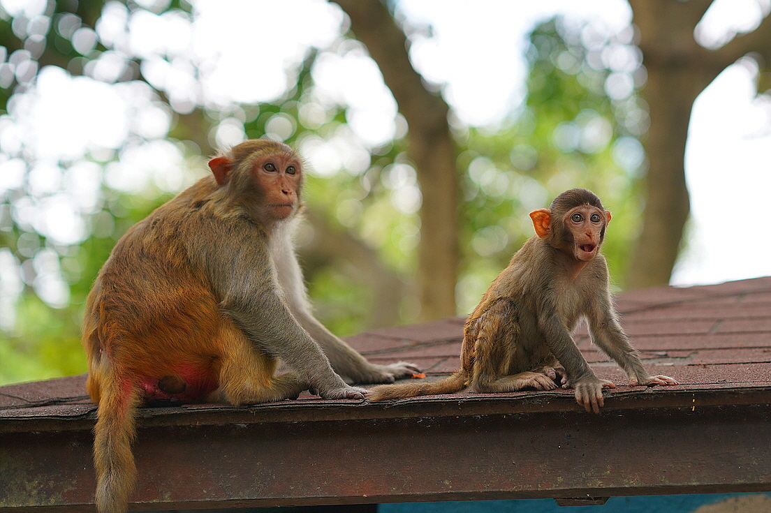 먹을 걸 주면 엄마와 아기 원숭이들은