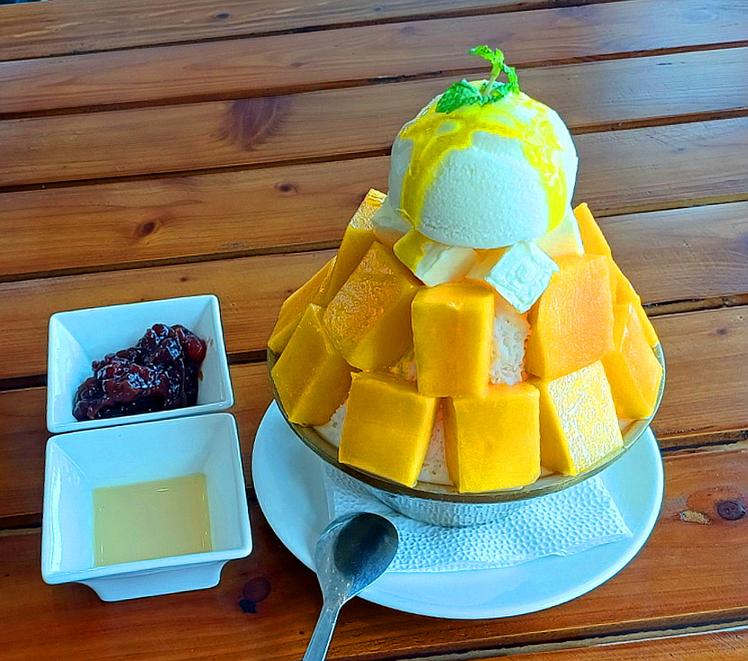 하루의 중간 점검은 망고 빙수입니다.