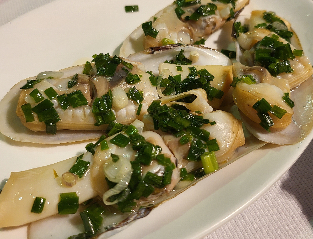 맛조개인데 그 위에 파를