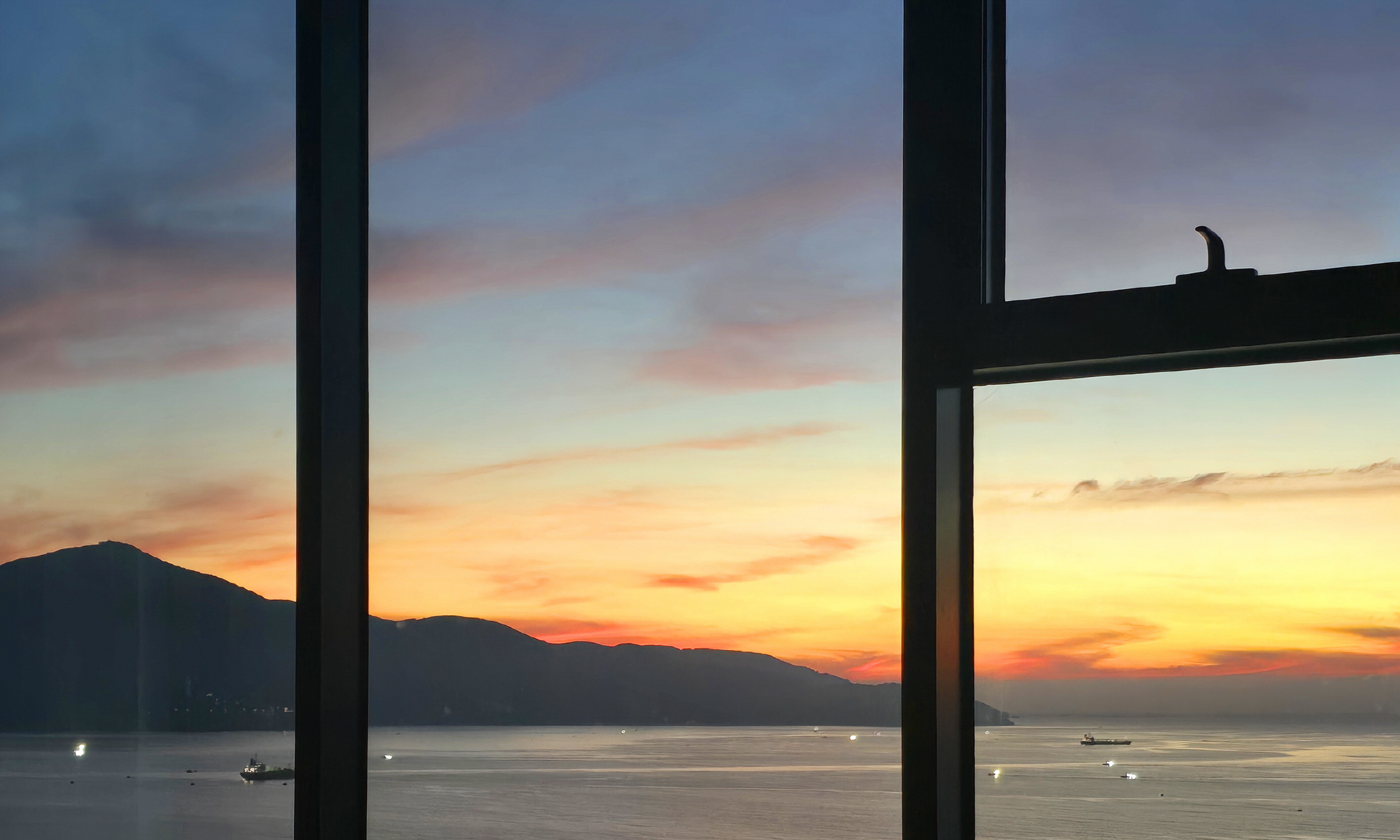 숙소에서 노을 지는 장면을