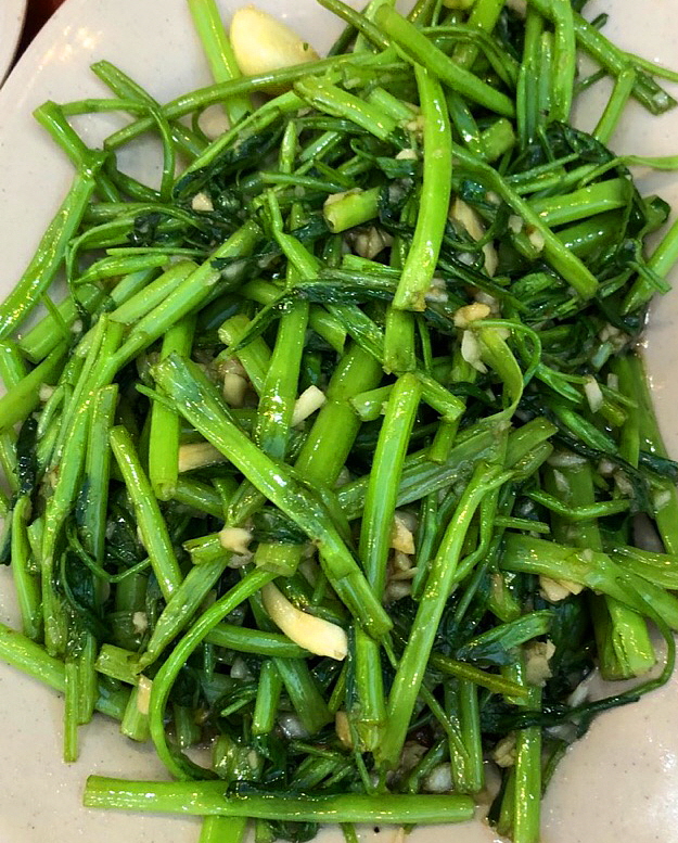 공심채를 데쳐서 나오는