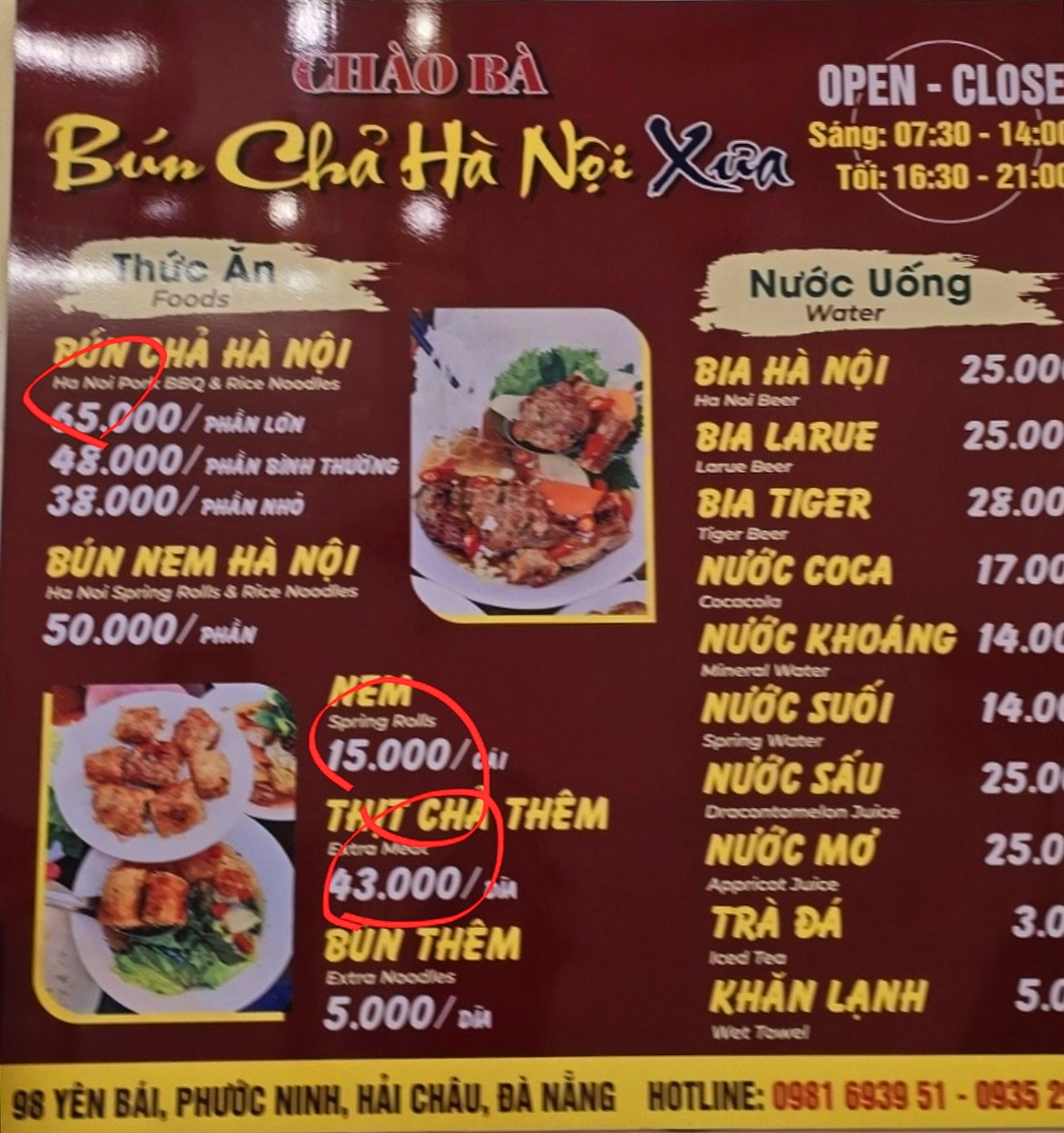 베트남에서 파는 쌀국수 가격비교를
