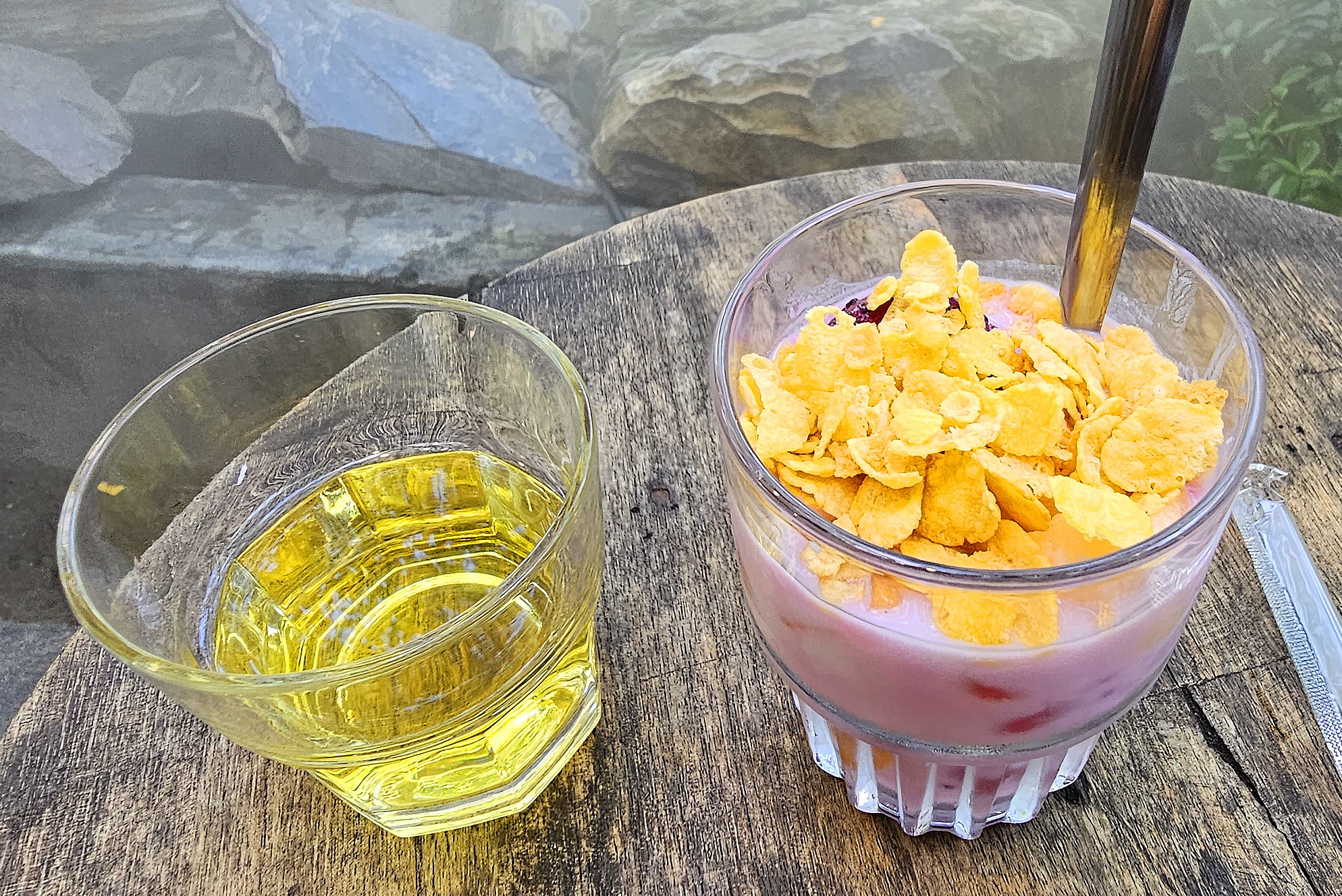 달콤한 딸기 요거트 음료를 주문했습니다.