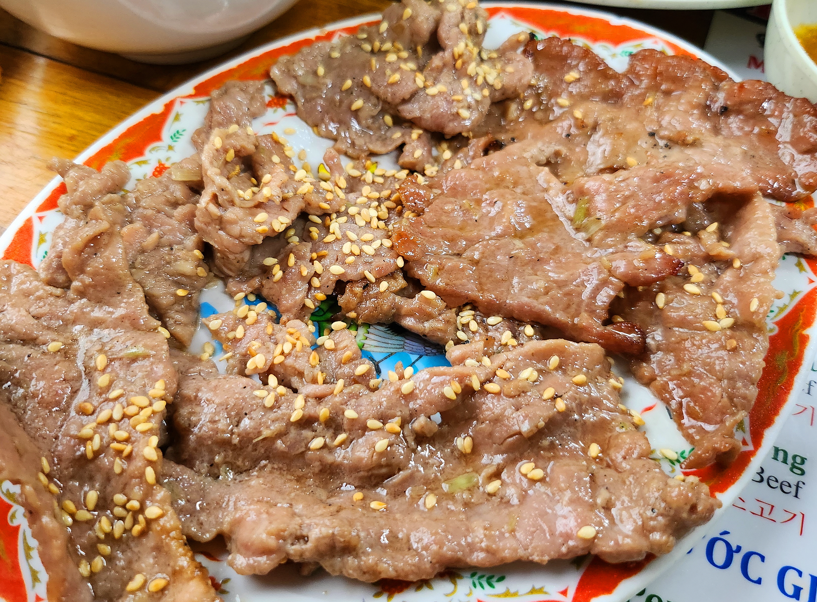 그 위에 구운 돼지고기가 얹어 나옵니다.