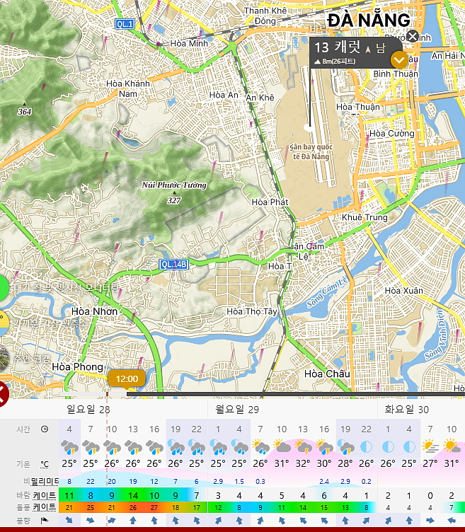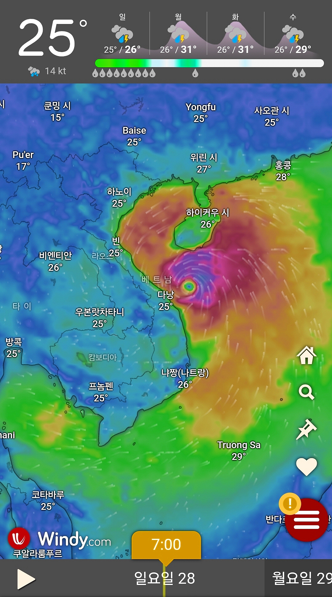 다낭 바로 코앞에 태풍이 다가왔습니다.