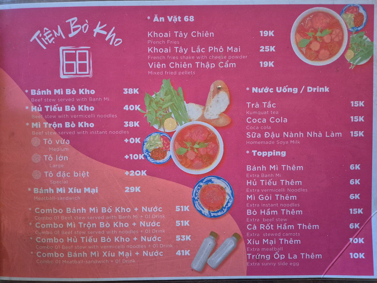 반미와 소고기 쌀국수 모두 2천 원이네요.