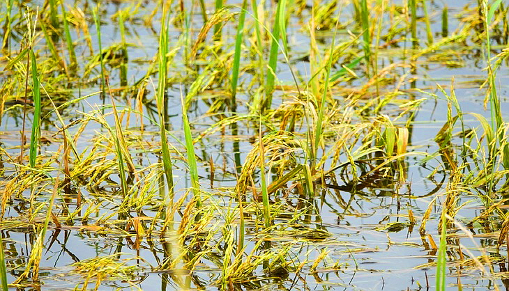 쪽배를 타고 이삭을 걷으러 다닌답니다.