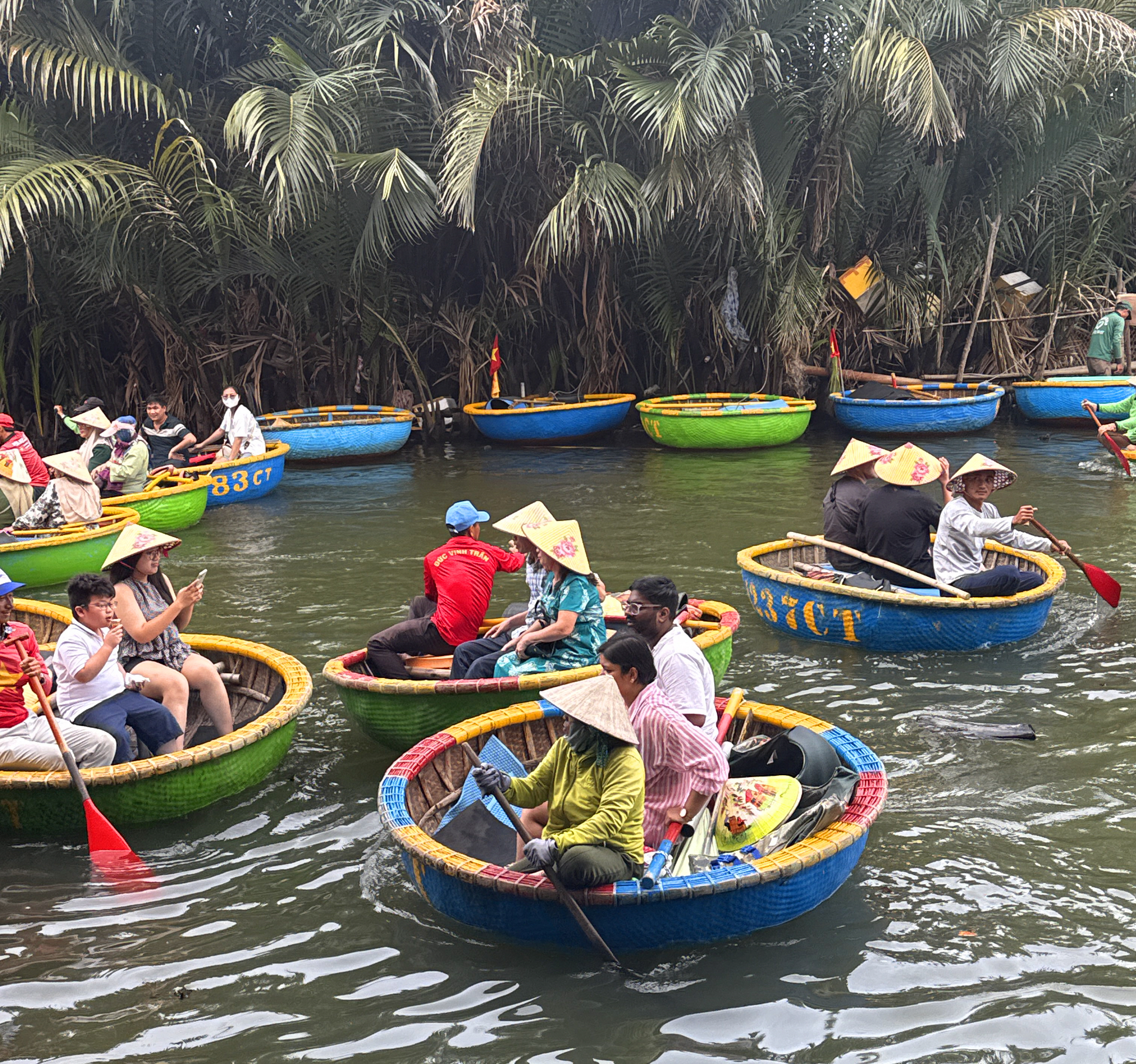 호이안에 강물이 많이 빠져 바구니배를