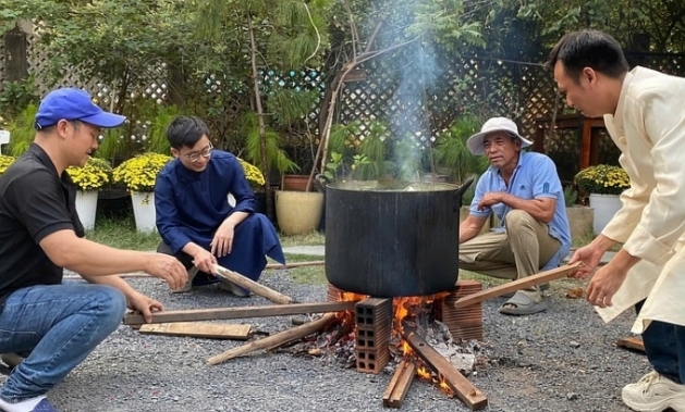 집안 어르신이 반뗏을 만드는 법을 알려주고 있습니다.