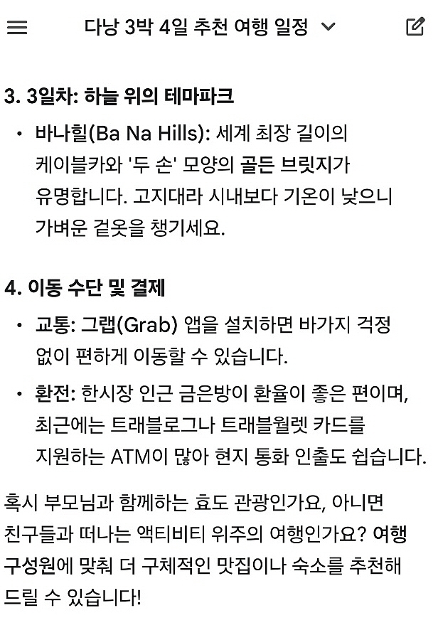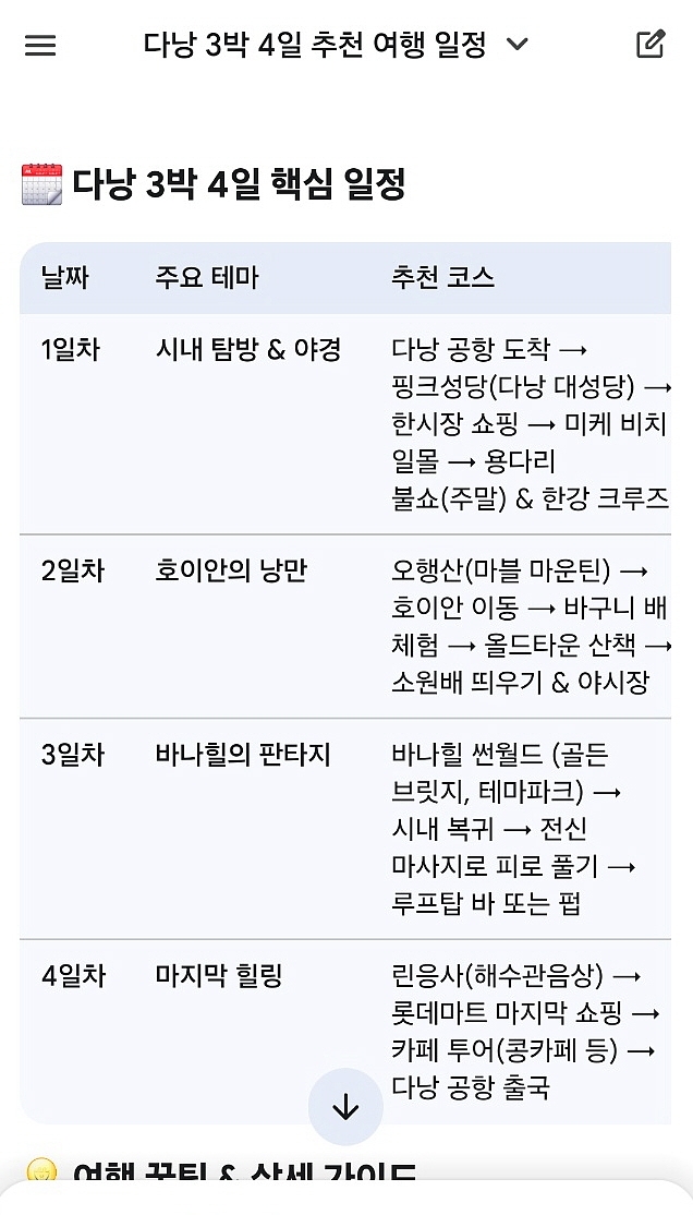이게 AI가 짜준 다낭 3박 4일 일정인데