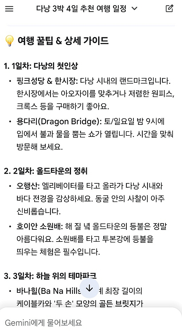 오늘은 AI에게 다낭 여행계획을 짜 달라고 하면