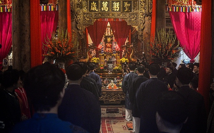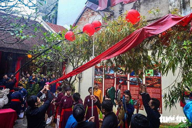 까이네우(cây nêu) 세우기 의식의 한 장면입니다,