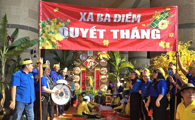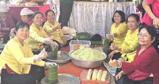 반텟(Bánh Tét, 베트남식 찹쌀떡) 만들기 대회 현장입니다.