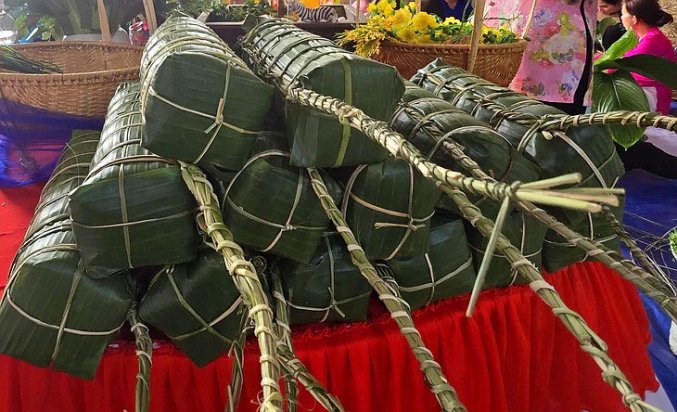 반텟(Bánh Tét, 베트남식 찹쌀떡)을 만들고 있는 현장인데