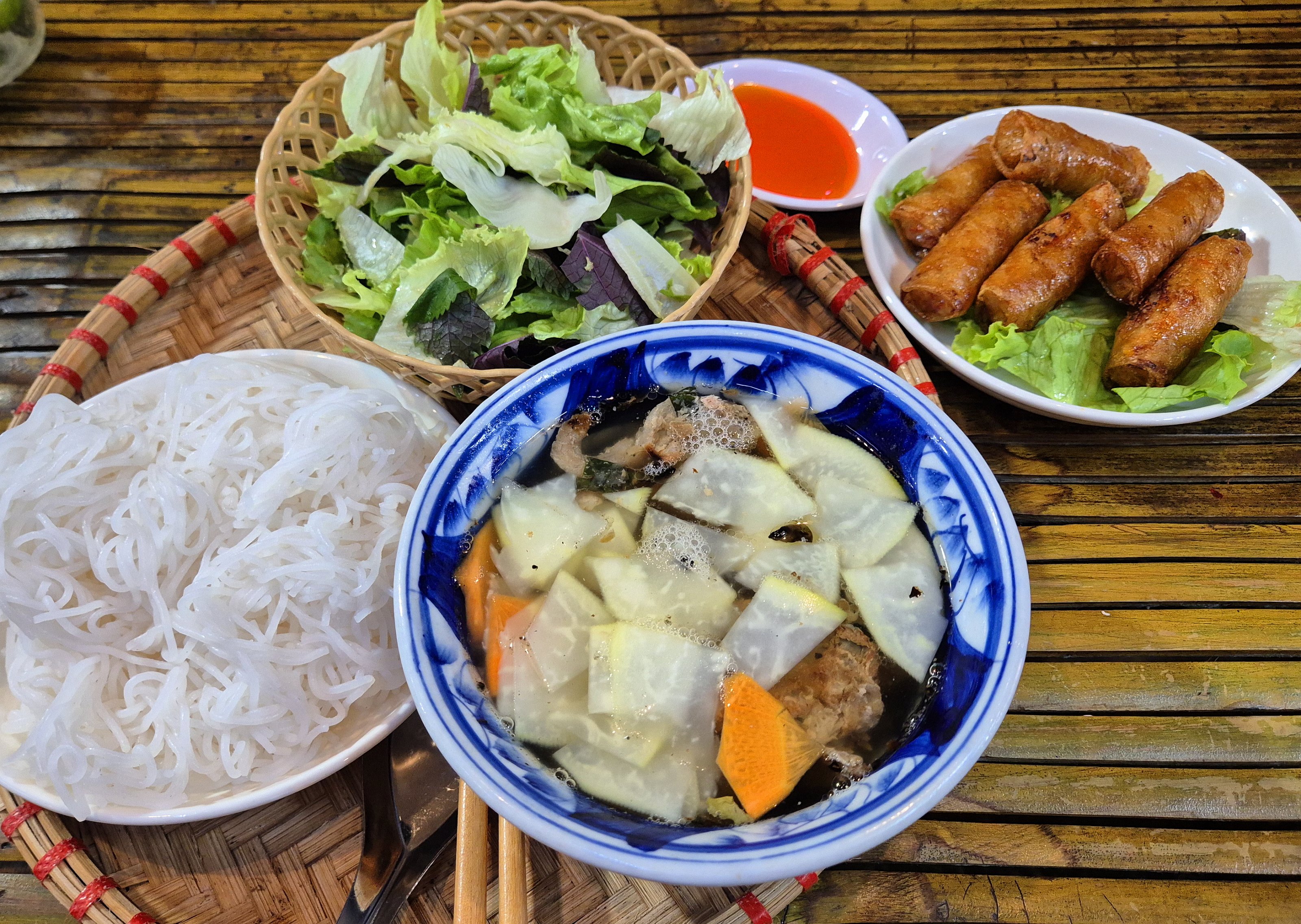채소나 튀긴 만두인 분넴을 곁들여 먹기도 합니다.