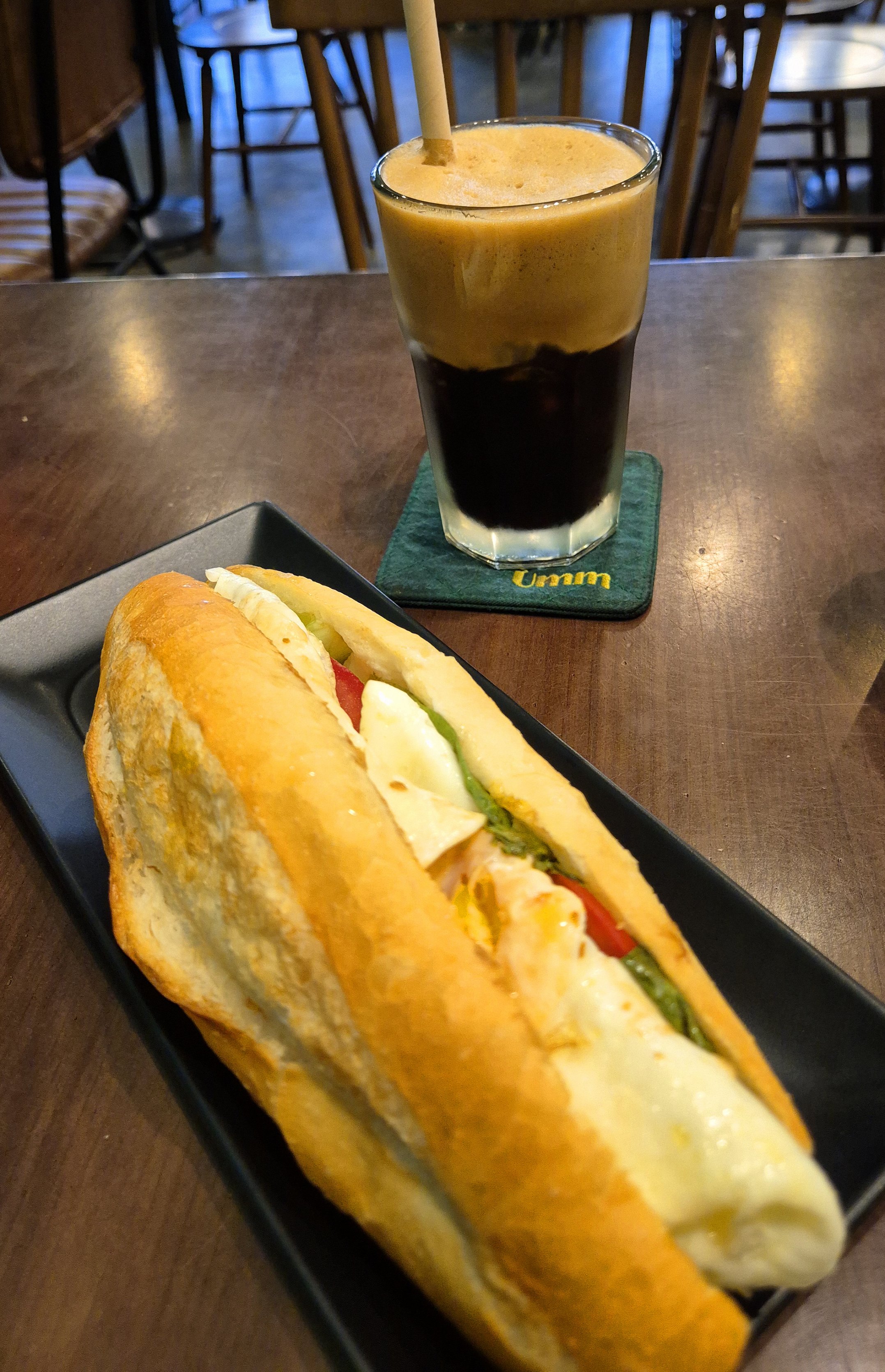 에그 커피와 함께 먹는 계라 반미.
