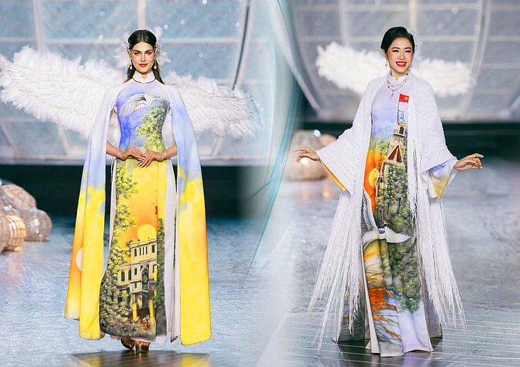 아오자이 패션쇼가 열려 디자이너들이