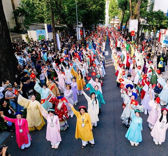 청년의 날을 맞아 걷기 대회와 아오자이 행진이