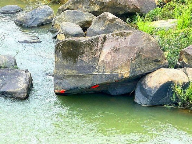 다낭시 탄빈 면의 강에 있는 바위 하나가