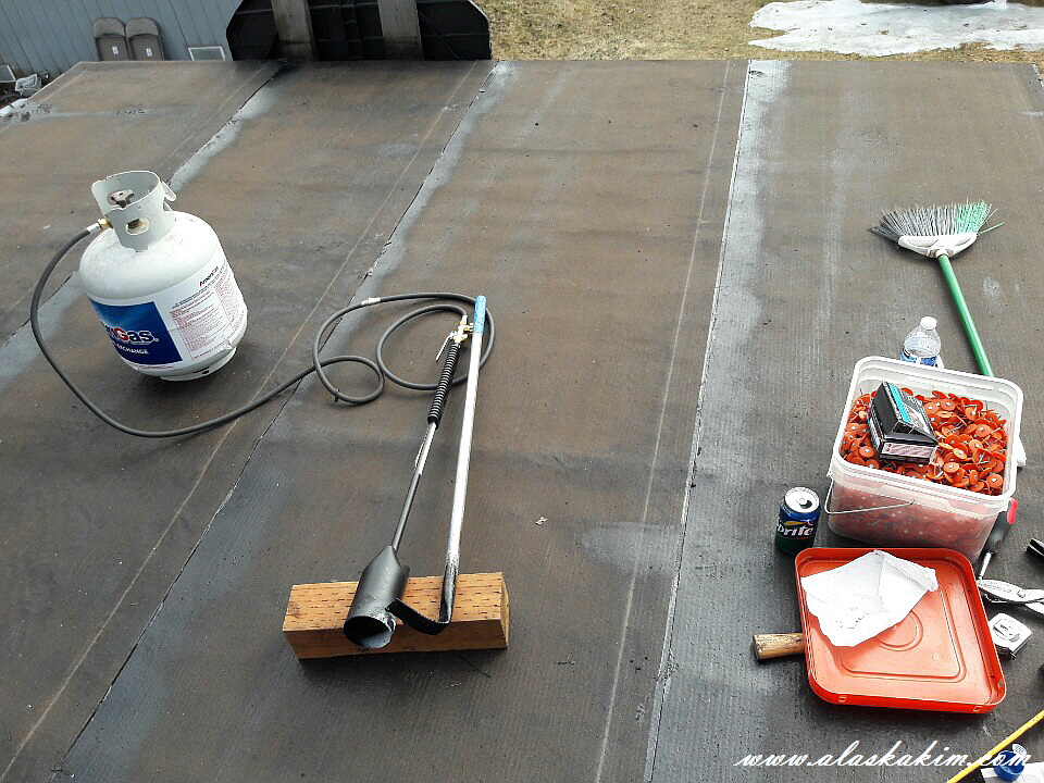 땜질도 하면서 가스불로 지지면서 지붕을 새롭게