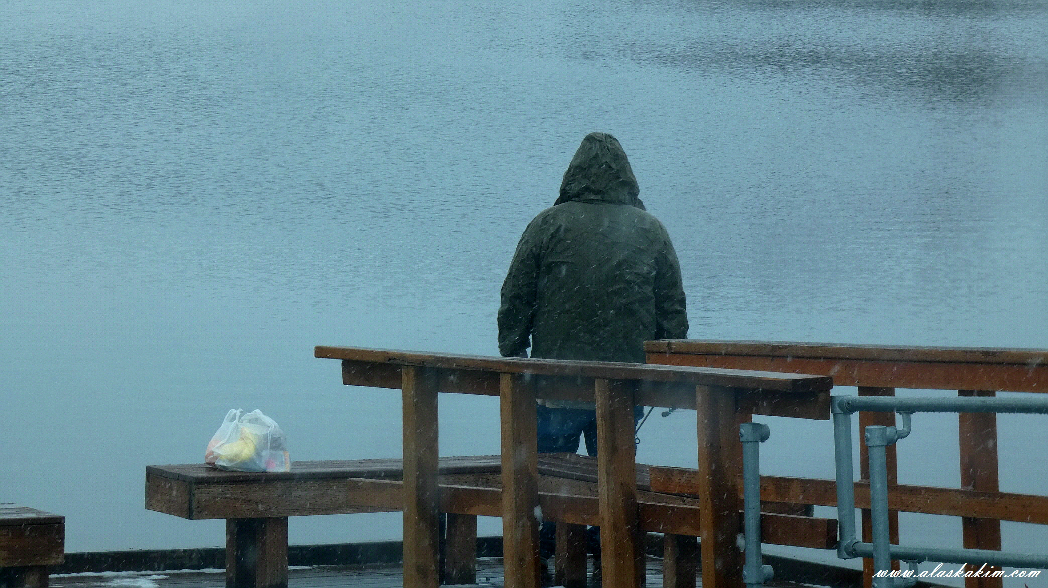 내리는 눈을 맞으며 낚시를 하는 사람이 있더군요.