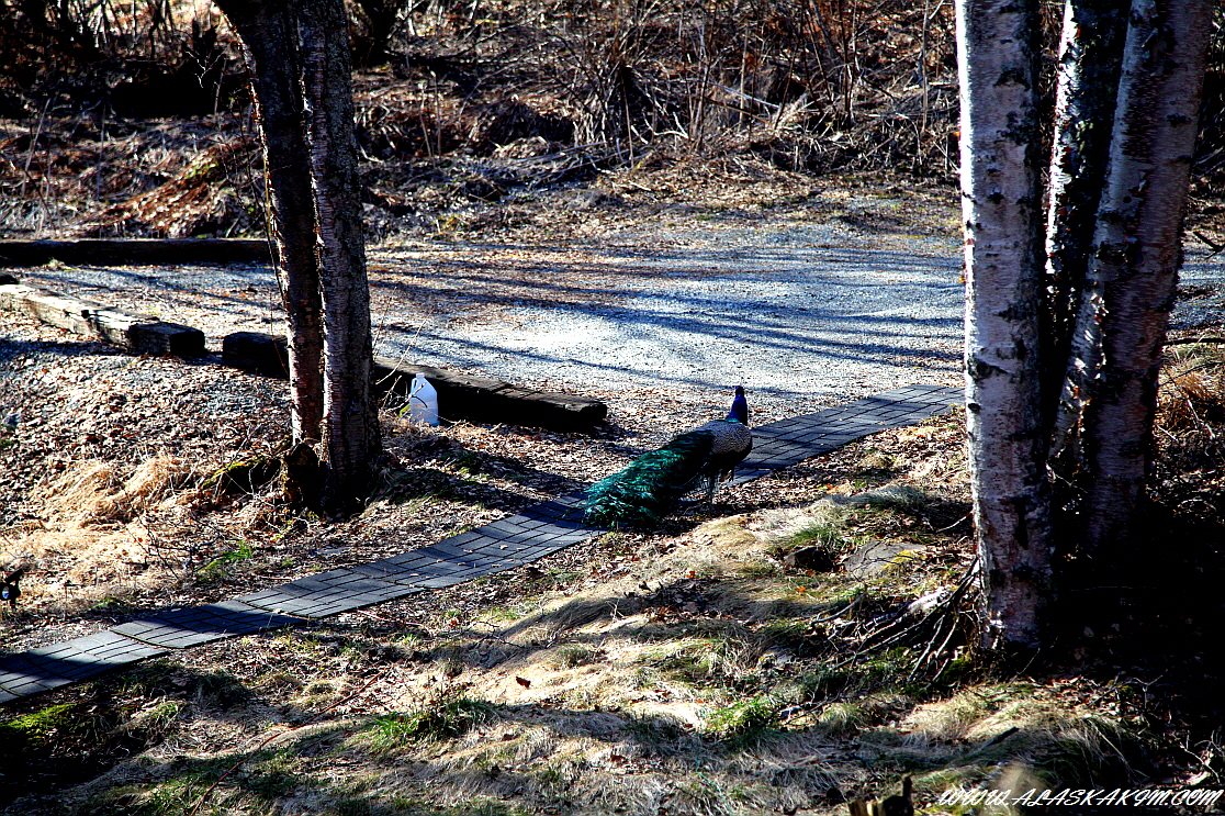 인디언 마을에 잠시 들렀는데 공작새가 동네를