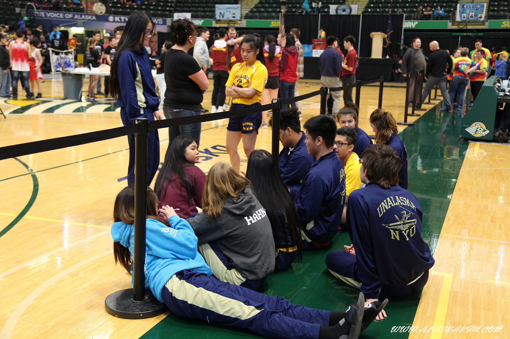 UNalaska 팀이 모여서 조금 후에 치러질 경기에 대한