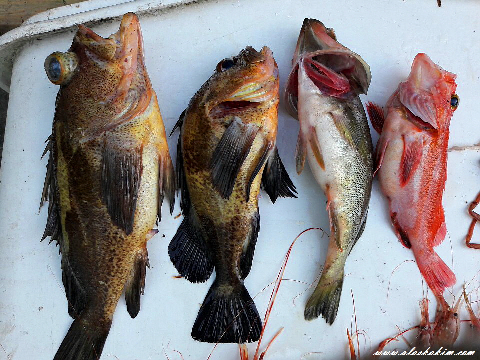 우럭 세 종류를 구색 갖춰서 잡았습니다.