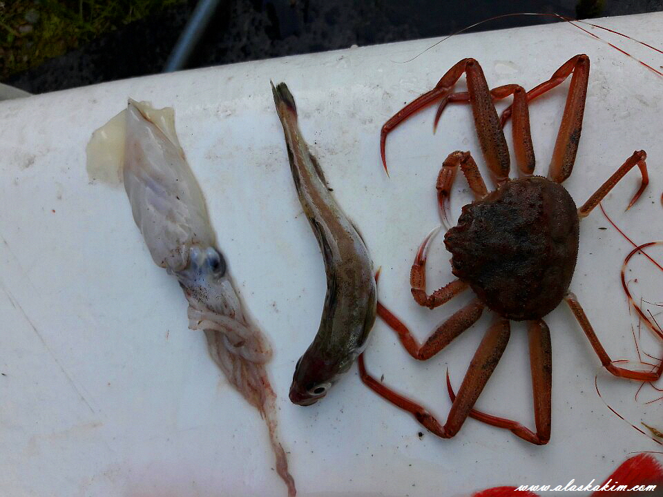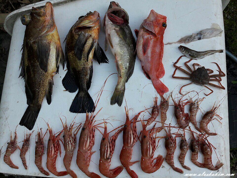 우럭 4마리, 새우 19마리(아기 새우 포함) 꼴뚜기 한 마리,게 한마리,아기대구 한마리,